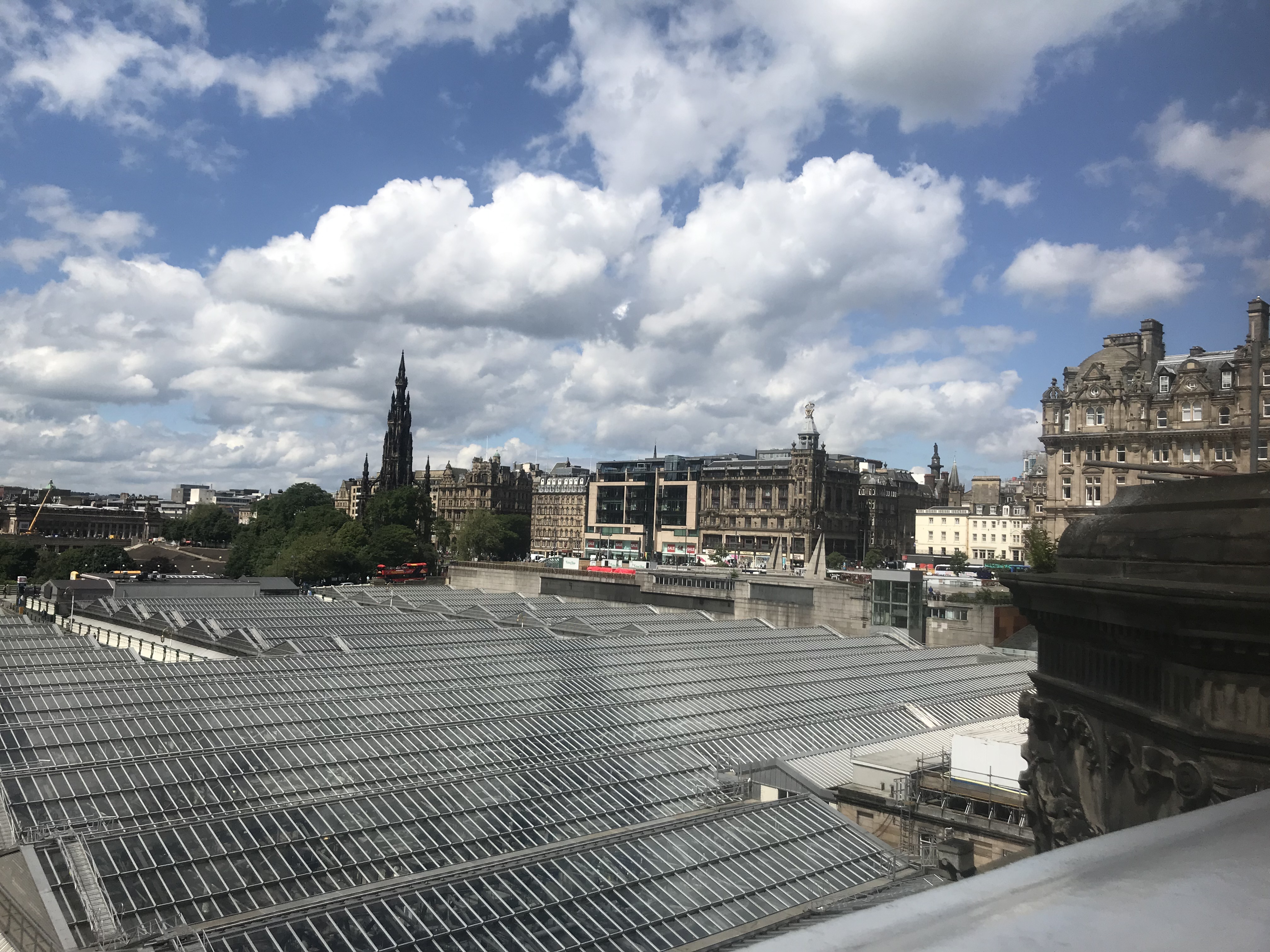 Edinburgh, which more people recommend, happened the next day, after a cute and zippy train ride. Instantly there was more appeal. Stepping out of the main station, you are quickly granted the same Beaux-Arts/Roman/Classical styles that characterize many European cities, and, to a lesser extent, Glasgow, but there is a more dramatic and beautiful topography to compliment the setting with a view.